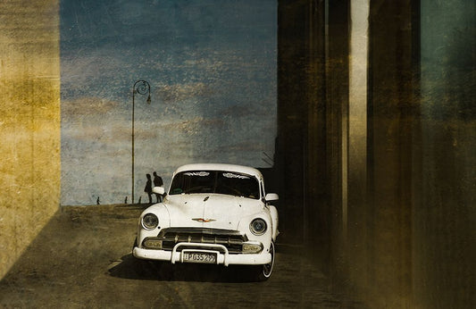A White Car In Havanna Black Ornate Wood Framed Art Print with Double Matting by Schuster, Inge