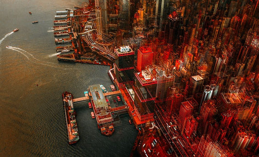 Ny Skyline Black Ornate Wood Framed Art Print with Double Matting by F. Turienzo, Carlos