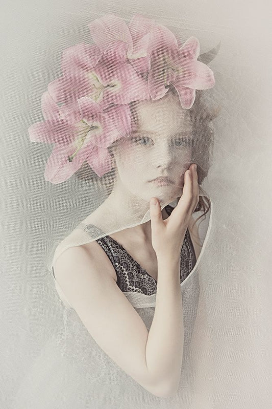 Mystery Girl Black Ornate Wood Framed Art Print with Double Matting by Kayen-Mouthaan, Carola
