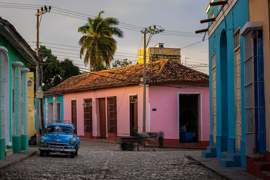 Colourful Trinidad - Cuba Black Ornate Wood Framed Art Print with Double Matting by Deakin, John