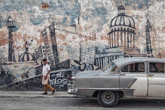 Cuba Street Car Black Ornate Wood Framed Art Print with Double Matting by Yosifov, Svetlin