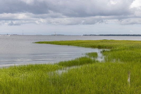 South Carolina Early cloudy morning at Folly Beach Black Ornate Wood Framed Art Print with Double Matting by Looney, Hollice