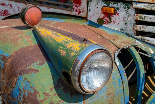 USA-Colorado Rusty old vintage truck Headlight detail Black Ornate Wood Framed Art Print with Double Matting by Hopkins, Cindy Miller