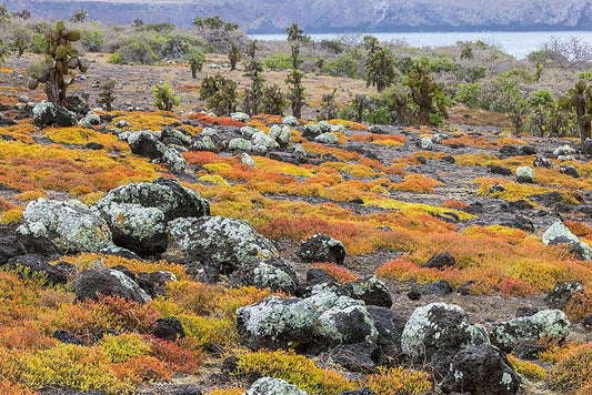 Carpet weed along with Opuntia prickly pear cactus-South Plaza Island-Galapagos Islands-Ecuador Black Ornate Wood Framed Art Print with Double Matting by Jones, Adam