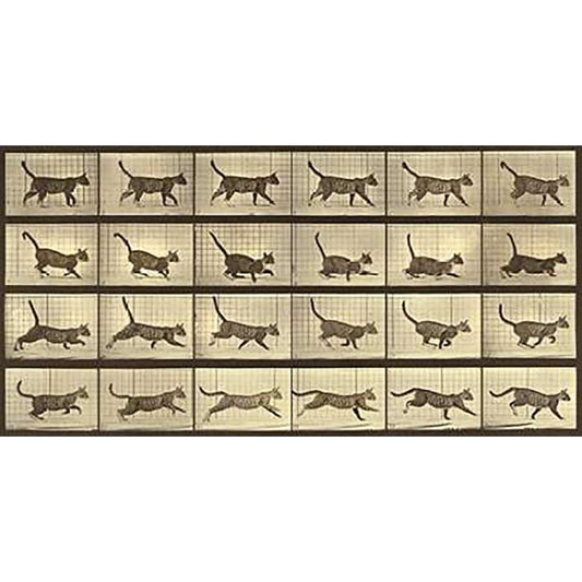Motion Study: Running Cat White Modern Wood Framed Art Print by Muybridge, Eadweard