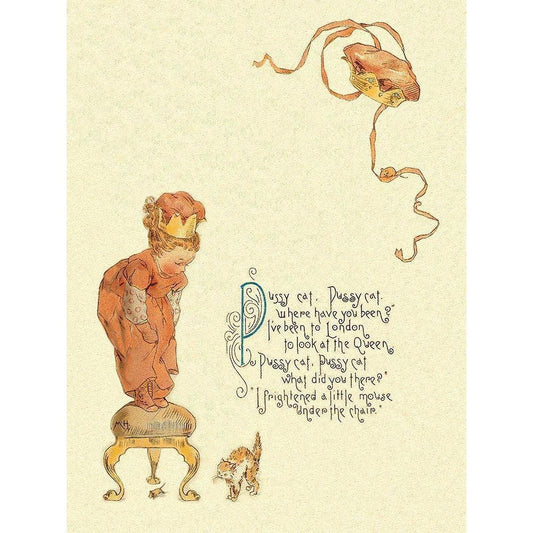 Nursery Rhymes: Pussy Cat, Pussy Cat White Modern Wood Framed Art Print by Humphrey, Maud