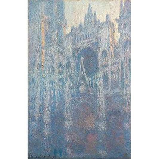 The Portal of Rouen Cathedral in Morning Light White Modern Wood Framed Art Print by Monet, Claude