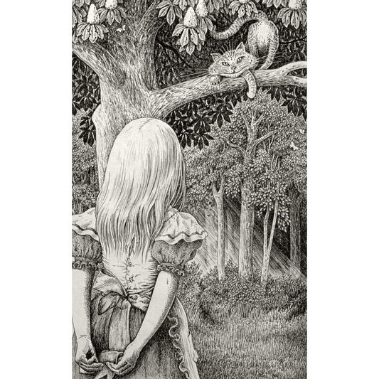 Alice with Cheshire Cat White Modern Wood Framed Art Print by Partridge, Brian