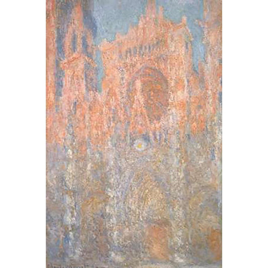 Rouen Cathedral Sun Effect End Of The Day White Modern Wood Framed Art Print by Monet, Claude