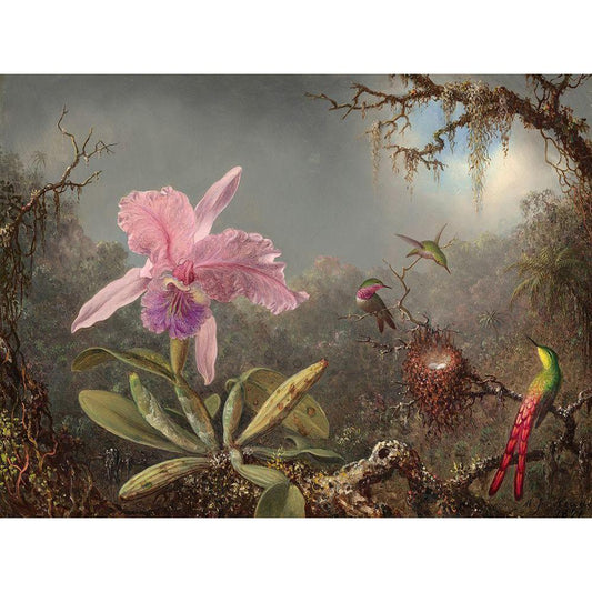 Cattleya orchid and three hummingbirds White Modern Wood Framed Art Print by Heade, Martin Johnson