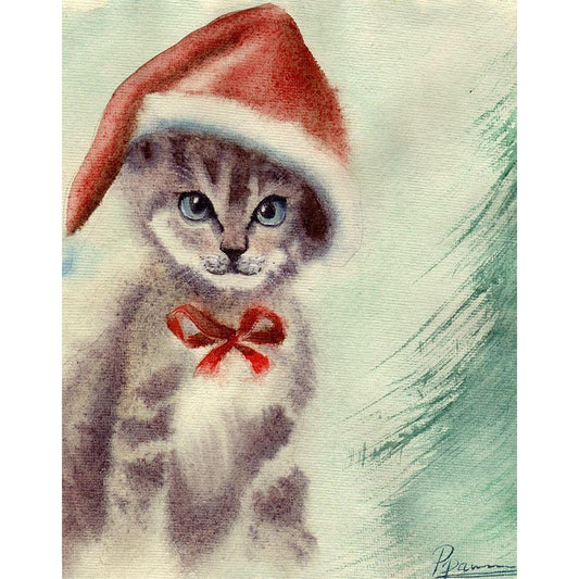 Cat in Hat White Modern Wood Framed Art Print by Shefranov, Olga