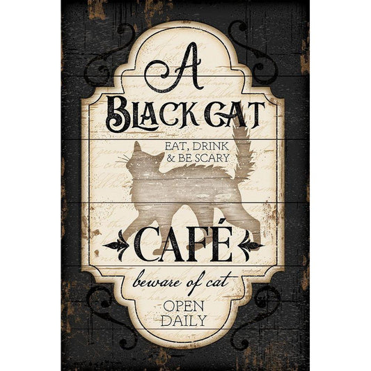 Black Cat Café White Modern Wood Framed Art Print by Pugh, Jennifer