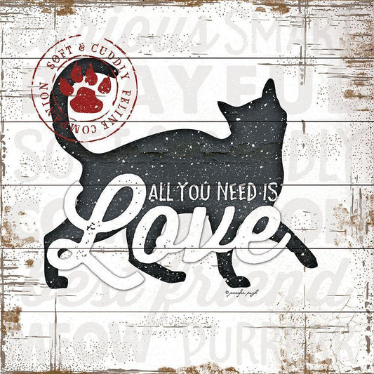 All You Need is Love - Cat White Modern Wood Framed Art Print by Pugh, Jennifer