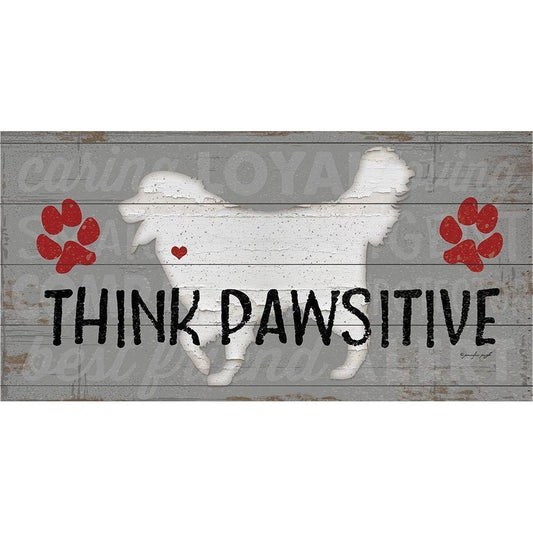 Think Pawsitive White Modern Wood Framed Art Print by Pugh, Jennifer