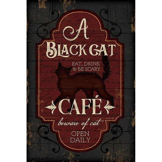 Black Cat Café White Modern Wood Framed Art Print by Pugh, Jennifer