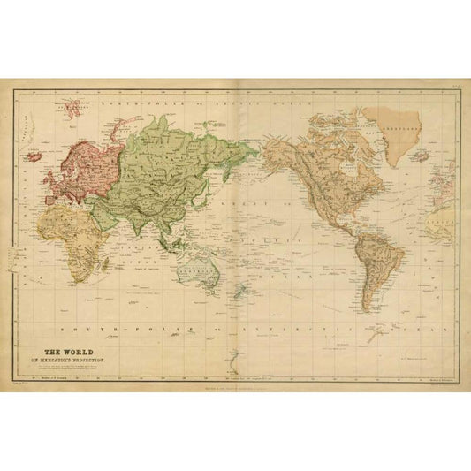 The World-on Mercators Projection White Modern Wood Framed Art Print by Vision Studio