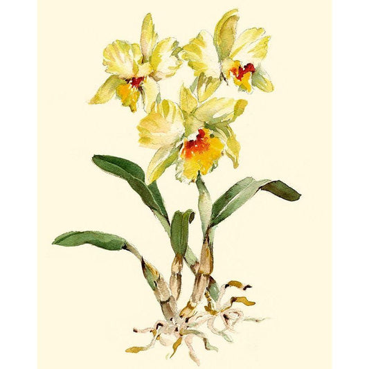 Yellow Cattleya Orchid White Modern Wood Framed Art Print by Waldman, Joy