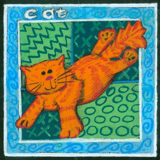 Whimsical Cat White Modern Wood Framed Art Print by L. Choate