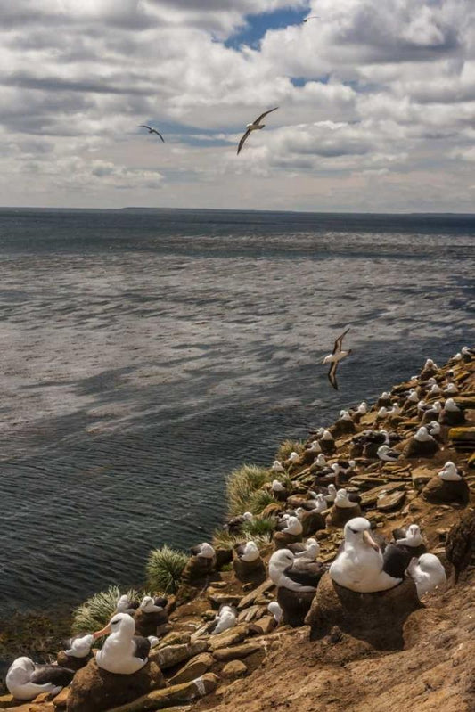 Saunders Island Black-browed albatross colony White Modern Wood Framed Art Print with Double Matting by Illg, Cathy and Gordon