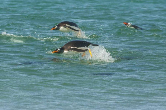 Sea Lion Island Gentoo penguins porpoising White Modern Wood Framed Art Print with Double Matting by Illg, Cathy and Gordon