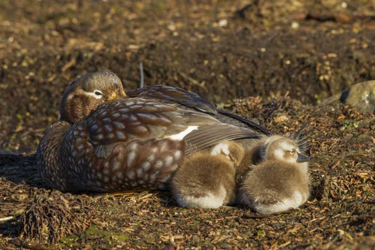 Bleaker Island Steamer duck and chicks White Modern Wood Framed Art Print with Double Matting by Illg, Cathy and Gordon