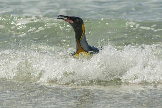 East Falkland King penguin in surf White Modern Wood Framed Art Print with Double Matting by Illg, Cathy and Gordon
