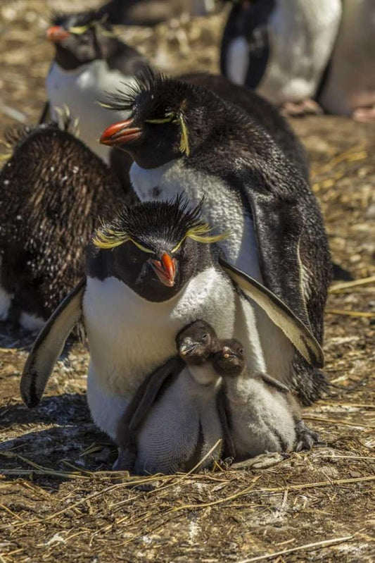 Bleaker Island Rockhopper penguin family White Modern Wood Framed Art Print with Double Matting by Illg, Cathy and Gordon