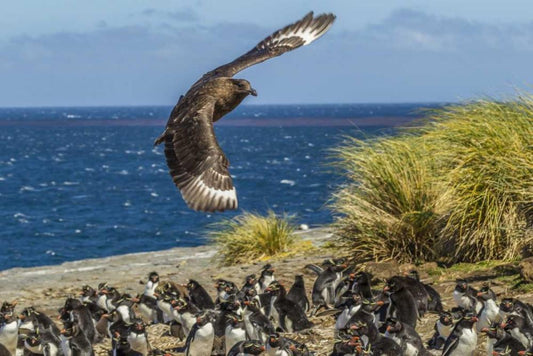 Bleaker Island Falkland skua over penguin colony White Modern Wood Framed Art Print with Double Matting by Illg, Cathy and Gordon