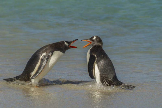 Bleaker Island Gentoo penguins arguing White Modern Wood Framed Art Print with Double Matting by Illg, Cathy and Gordon