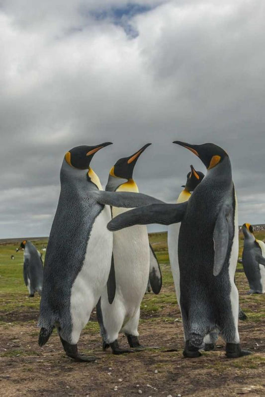 East Falkland King penguins walking White Modern Wood Framed Art Print with Double Matting by Illg, Cathy and Gordon