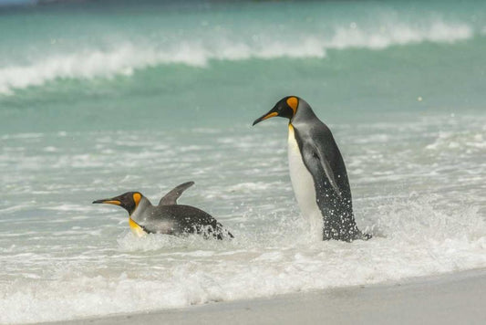 East Falkland King penguins in beach surf White Modern Wood Framed Art Print with Double Matting by Illg, Cathy and Gordon