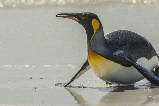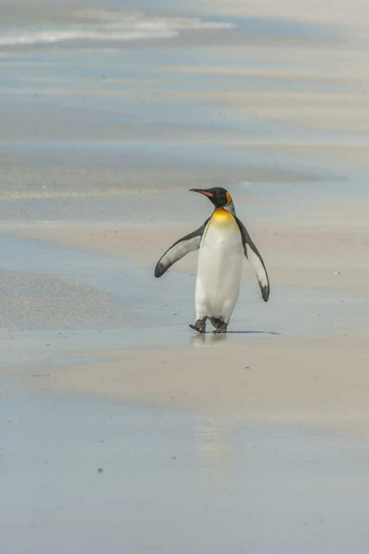 East Falkland King penguin walking on beach White Modern Wood Framed Art Print with Double Matting by Illg, Cathy and Gordon