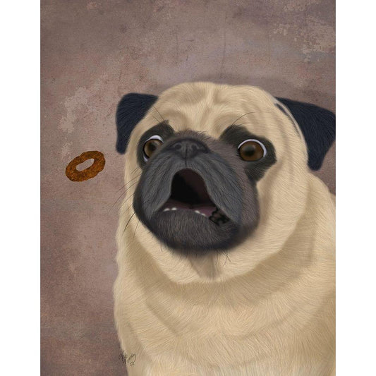 Pug, Catch 1 White Modern Wood Framed Art Print by Fab Funky