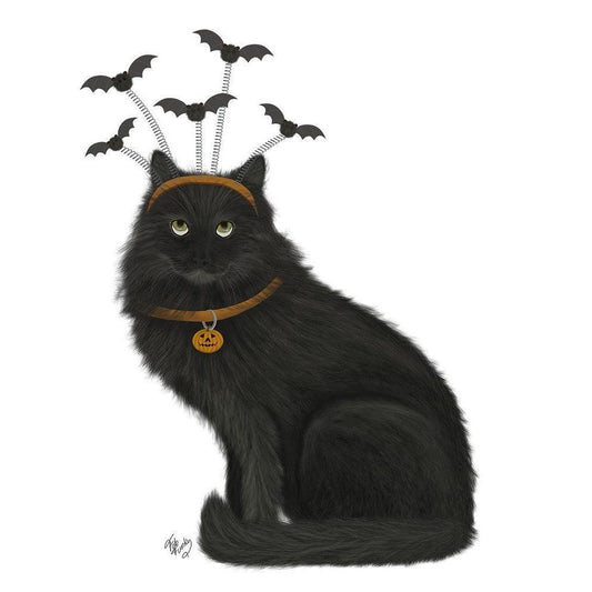 Black Cat with Autumn Hat, Full White Modern Wood Framed Art Print by Fab Funky