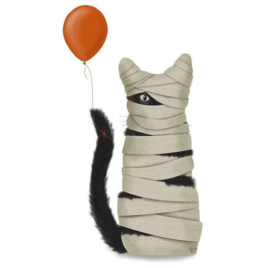 Halloween Mummy Cat White Modern Wood Framed Art Print by Fab Funky