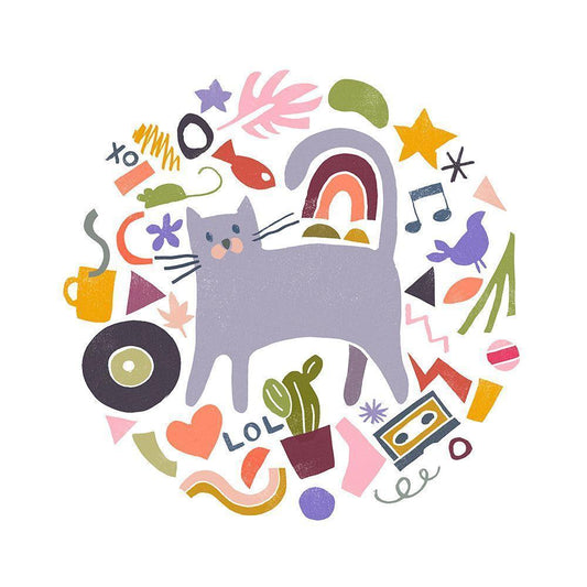 Cool Cats I White Modern Wood Framed Art Print by Vess, June Erica