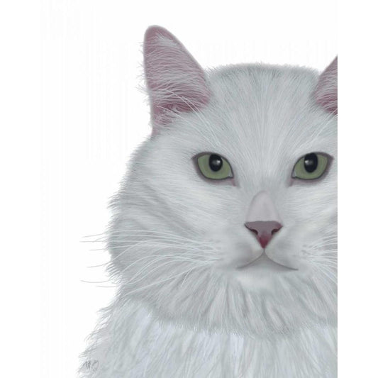 Cat, White Portrait on White White Modern Wood Framed Art Print by Fab Funky
