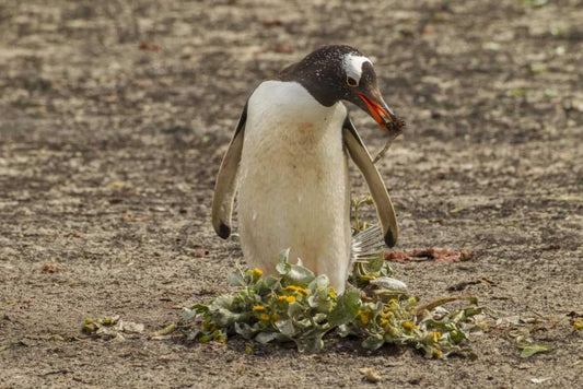 Saunders Isl Gentoo penguin with nest material White Modern Wood Framed Art Print with Double Matting by Illg, Cathy and Gordon
