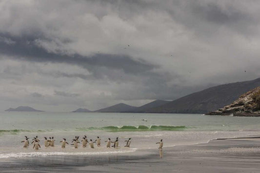 Saunders Island Gentoo penguins coming ashore White Modern Wood Framed Art Print with Double Matting by Illg, Cathy and Gordon