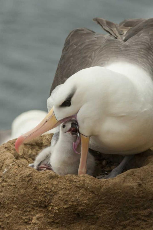 Saunders Island Black-browed albatross and chick White Modern Wood Framed Art Print with Double Matting by Illg, Cathy and Gordon