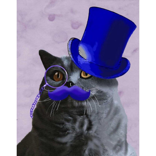 Grey Cat With Blue Top Hat and Moustache White Modern Wood Framed Art Print by Fab FunkyRegular price From $29.99 USDRegular priceUnit price per-