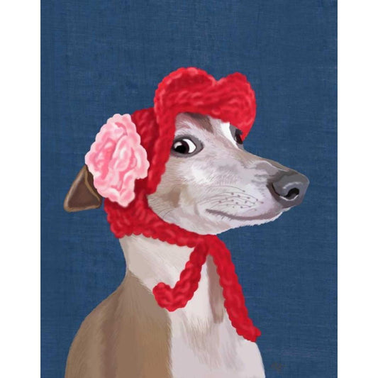 Greyhound with Red Woolly Hat White Modern Wood Framed Art Print by Fab FunkyRegular price From $29.99 USDRegular priceUnit price per-