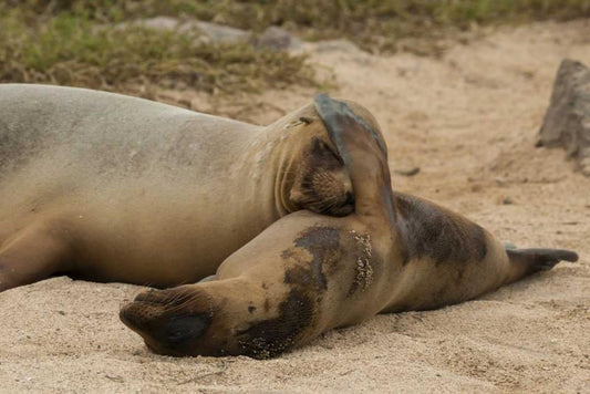 Ecuador, Galapagos NP Sleeping sea lions White Modern Wood Framed Art Print with Double Matting by Illg, Cathy and Gordon
