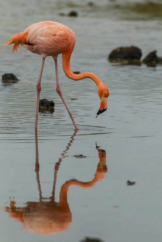 Ecuador, Galapagos NP Wading greater flamingo White Modern Wood Framed Art Print with Double Matting by Illg, Cathy and Gordon