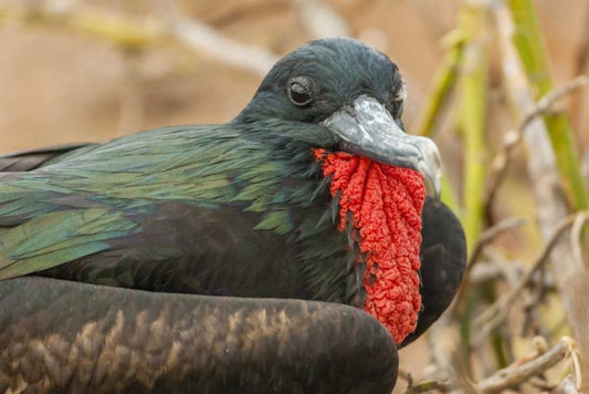 Ecuador, Galapagos Great Frigatebird displaying White Modern Wood Framed Art Print with Double Matting by Illg, Cathy and Gordon