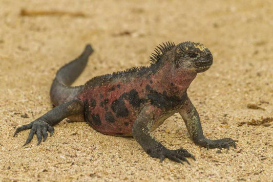 Ecuador, Galapagos NP Marine iguana on sand White Modern Wood Framed Art Print with Double Matting by Illg, Cathy and Gordon