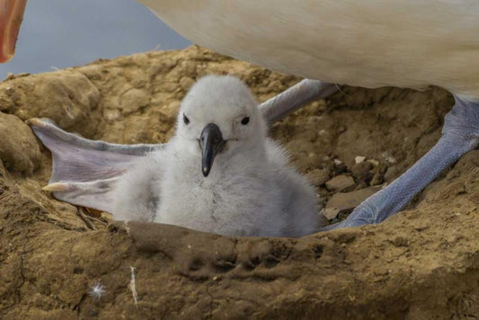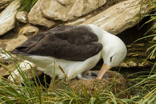Saunders Island Black-browed albatross and chick White Modern Wood Framed Art Print with Double Matting by Illg, Cathy and Gordon