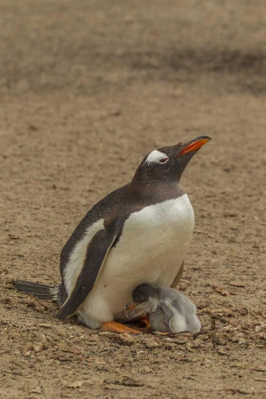 Saunders Island Gentoo penguin adult with chick White Modern Wood Framed Art Print with Double Matting by Illg, Cathy and Gordon