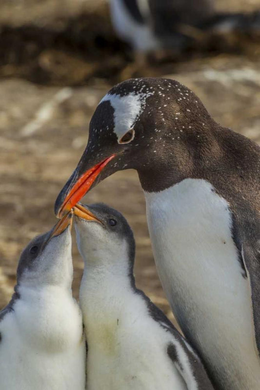 Saunders Island Gentoo penguin adult with chicks White Modern Wood Framed Art Print with Double Matting by Illg, Cathy and Gordon