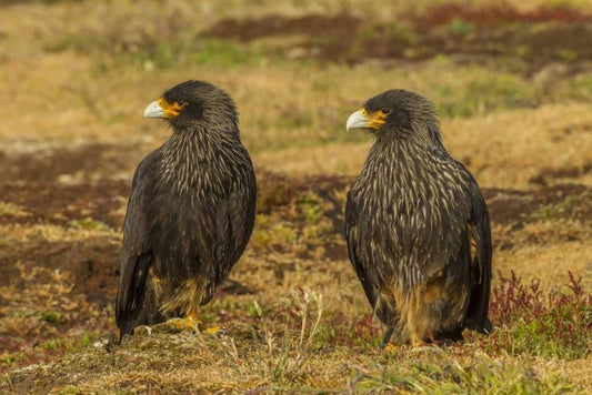 Sea Lion Island Striated caracaras on ground White Modern Wood Framed Art Print with Double Matting by Illg, Cathy and Gordon